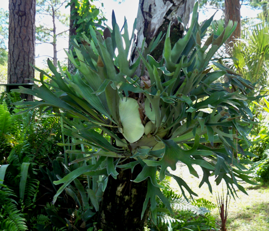 Staghorn Ferns are stunning when planted in their natural environment. This one is attached to a palm in our front garden. For more on staghorn ferns, see the link below to your right.