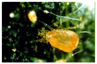 Photo to right shows The predatory mite occidentalis consumes the dreaded spidermites that are a scourge to our brugmansia and other plants, including vegetable crops.