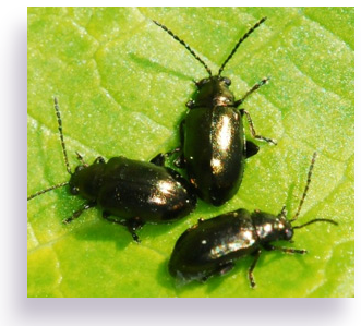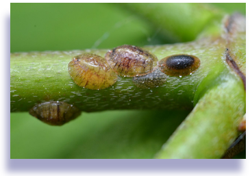 Insect pests in the garden are more than annoying, they spell trouble for all the progress you've been trying to make. Many of the pests I name here bother our beloved Brugmansia, others, like flea beetles, never seem to bother them. Many are discernable, and can be hand picked. Others are small, almost unseeable, and you don't even know they are there until the mark of decimation is apparent. The photo to left show Flea beetles. Flea beetles are tiny, hard shelled beetles that hop from plant to plant, sucking on them. You can tell they have been there when you see tiny pin holes in the leaves. Spray Pyrethrums to kill them.